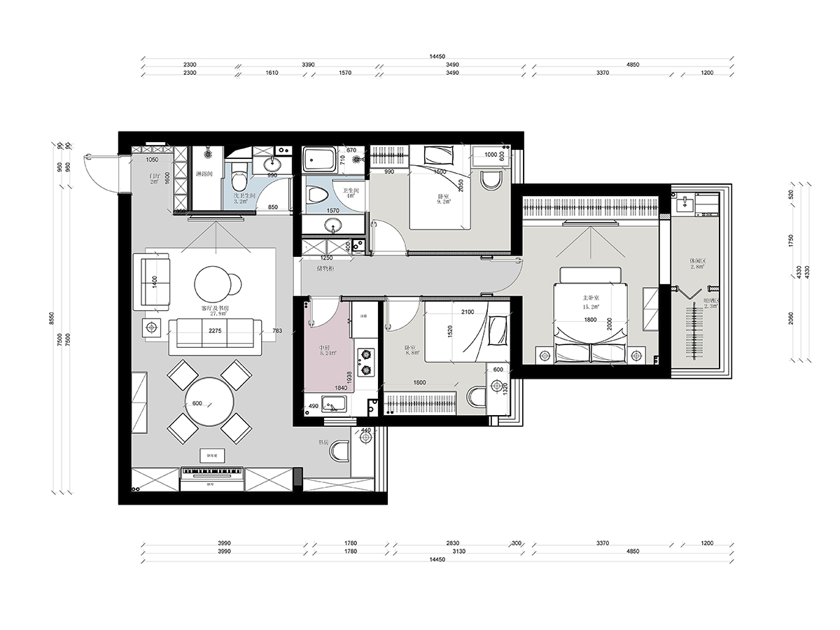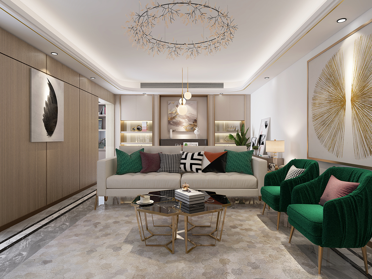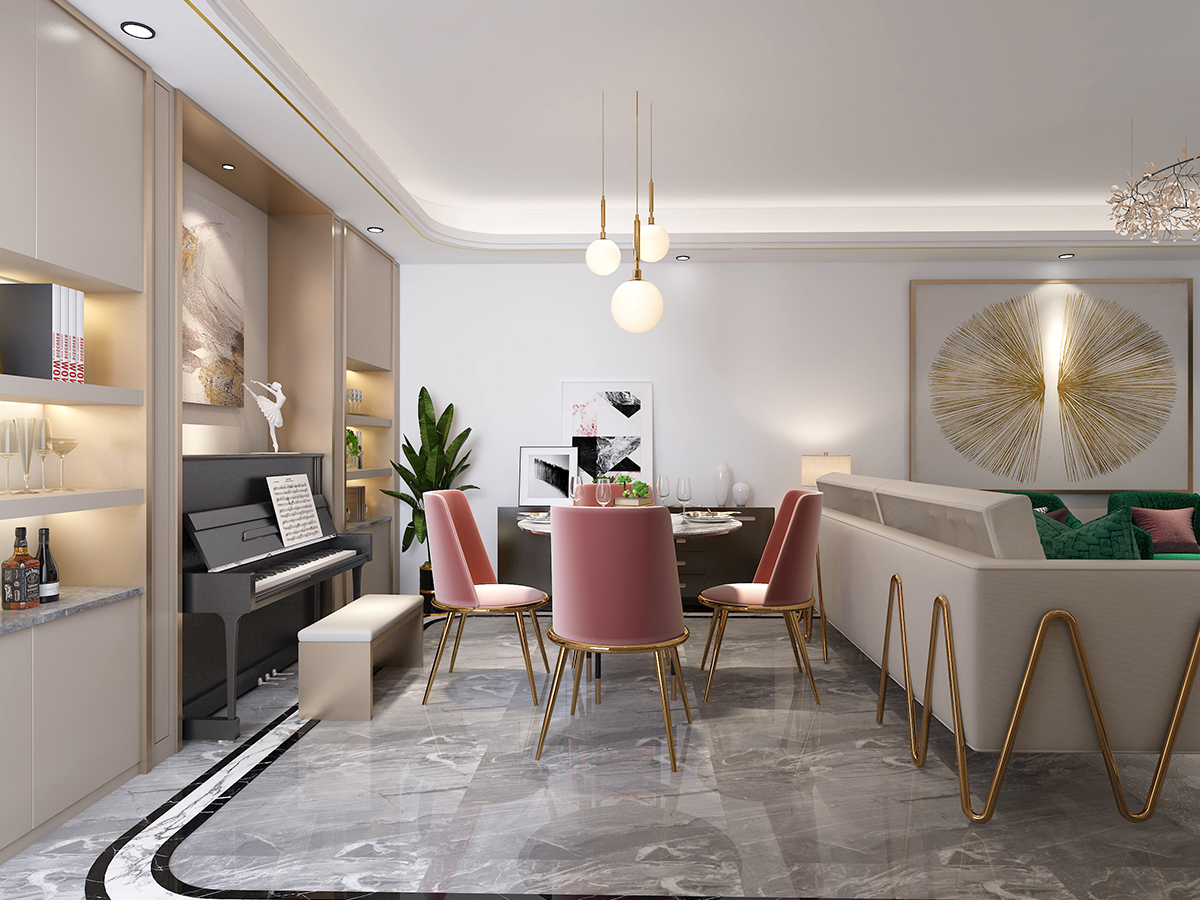 業主是一個五口家庭,兩位老人和一個上小學的兒子,設計師對設計方案進行深刻研究,總定稿為現代偏輕奢的感覺。在設計思路上要求既要保證設計的美觀和實用性又要兼顧老人和孩子。