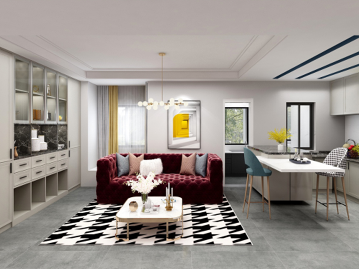 全屋以米色,深咖與胡桃木進行調和配色,同時通過色彩與材質的碰撞,體現古典與現代的交叉融合。 客廳的整體以淺色的乳膠漆配上深色的木材為主,讓視覺上有一個強烈的對比,背景墻用墨色掛畫做點綴,再配上新中式的軟裝,整體看上去非常的大氣有格調。 兒童房側面衣柜滿足孩子的衣服收納,書桌上面做置物架方便書記收納擺放,提高空間 的利用率,柜門無拉手設計,更加簡潔干凈,藍色的跳色使空間有趣富有特性。 在材質的選擇上除了傳統的天然木材,也運用了現代材料如金屬、皮革、玻璃等,以求創造出自然優雅質樸的氛圍。