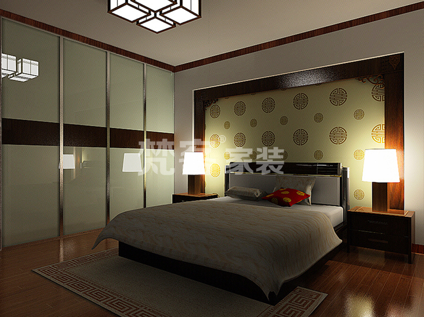 本方案屬于中式風格,含有中華民族古代元素、同時看出主人的品味,設計離不開歷史。在空間布局上,依據科學的設計原則,稍做變動,既保證了餐廳基本功能達到方便實用,又保持了最大限度的自然采光與通風。客廳部分在與走道相隔的人造隔墻中間設計的中式鏤空窗戶延長了電視墻的寬度,又達到了通透的效果,同時營造出更多的中式韻味來。與餐廳相連的一面用中式結構的博古架,實用又豐富了空間。
