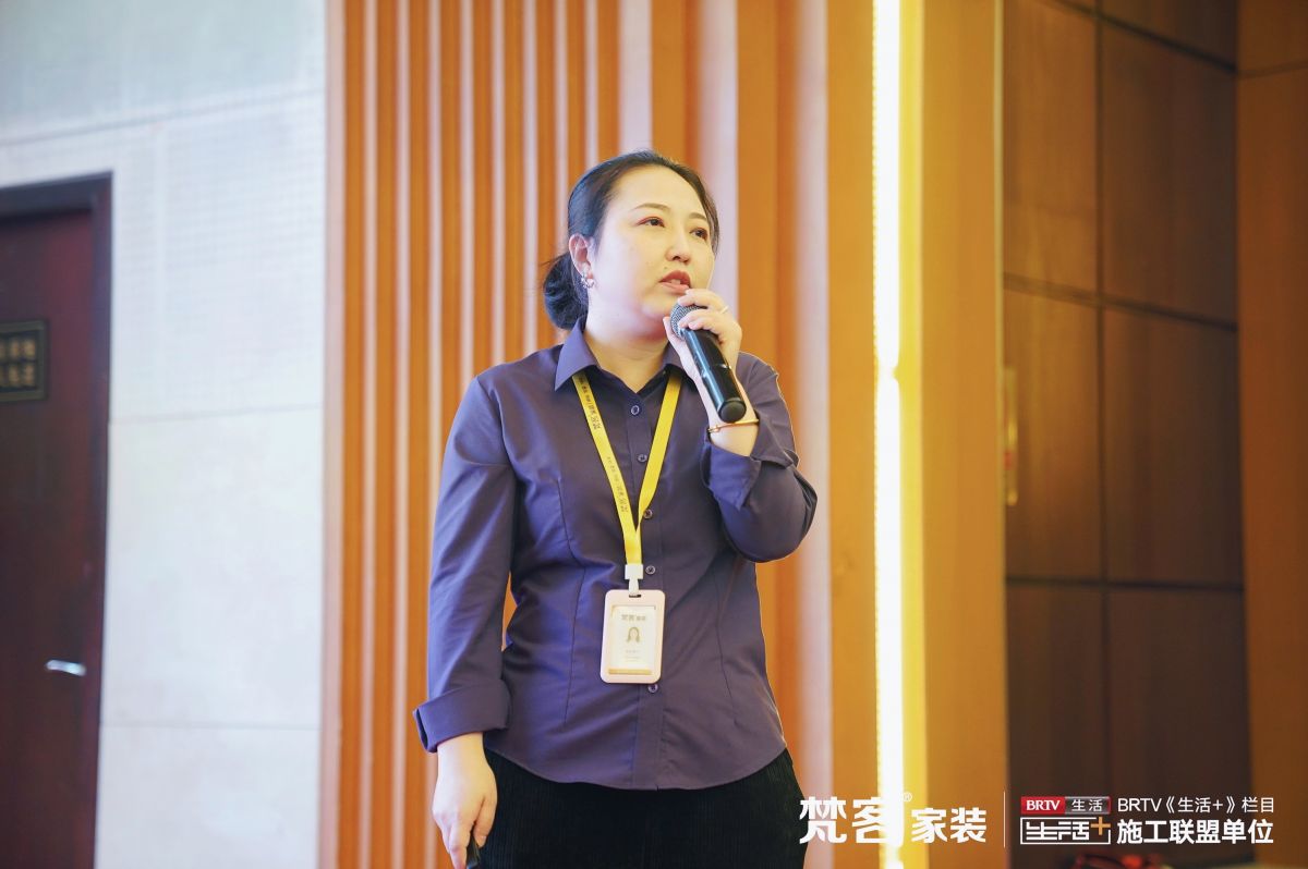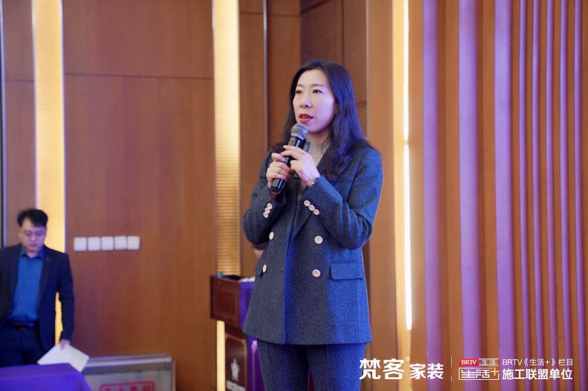 梵客集團(tuán)副總裁、梵客家裝總經(jīng)理任琳女士首先為大家?guī)砭拾l(fā)言,2024年是至關(guān)重要的一年,市場(chǎng)在回暖的同時(shí)對(duì)裝企也提出新的要求,老百姓對(duì)居住環(huán)境的改善日益迫切。作為京城頭部家裝企業(yè),梵客家裝義不容辭要繼續(xù)做好創(chuàng)新引領(lǐng)的工作,積極關(guān)注市場(chǎng)動(dòng)態(tài),努力為京城百姓提供更優(yōu)質(zhì)的家裝服務(wù),提升居住品質(zhì)。