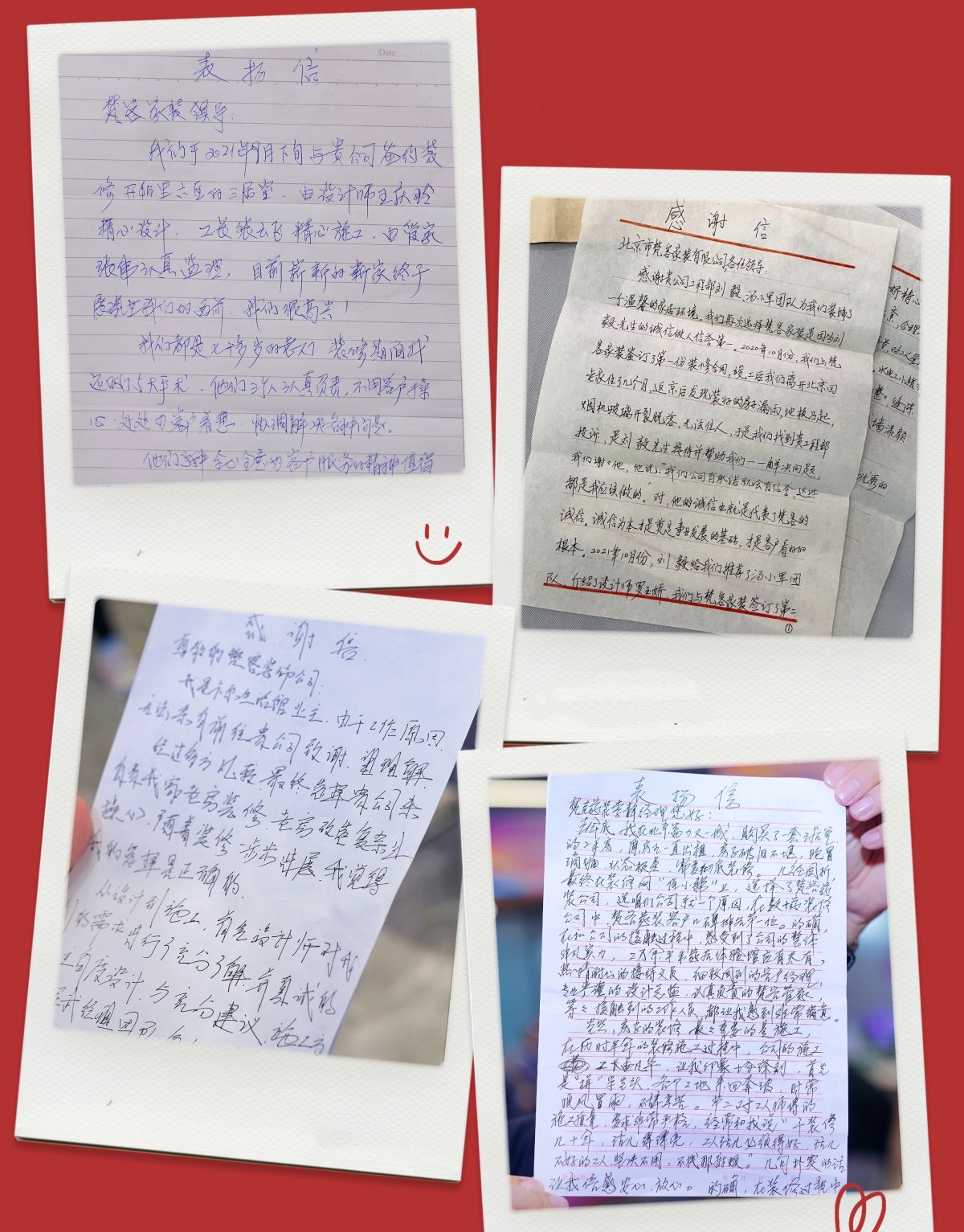 金杯銀杯不如老百姓的口碑,金獎銀獎不如老百姓的夸獎。來自業(yè)主朋友的手寫的感謝信和紅底金字的錦旗,再次肯定了梵客家裝的企業(yè)實力以及在百姓心目中的地位。