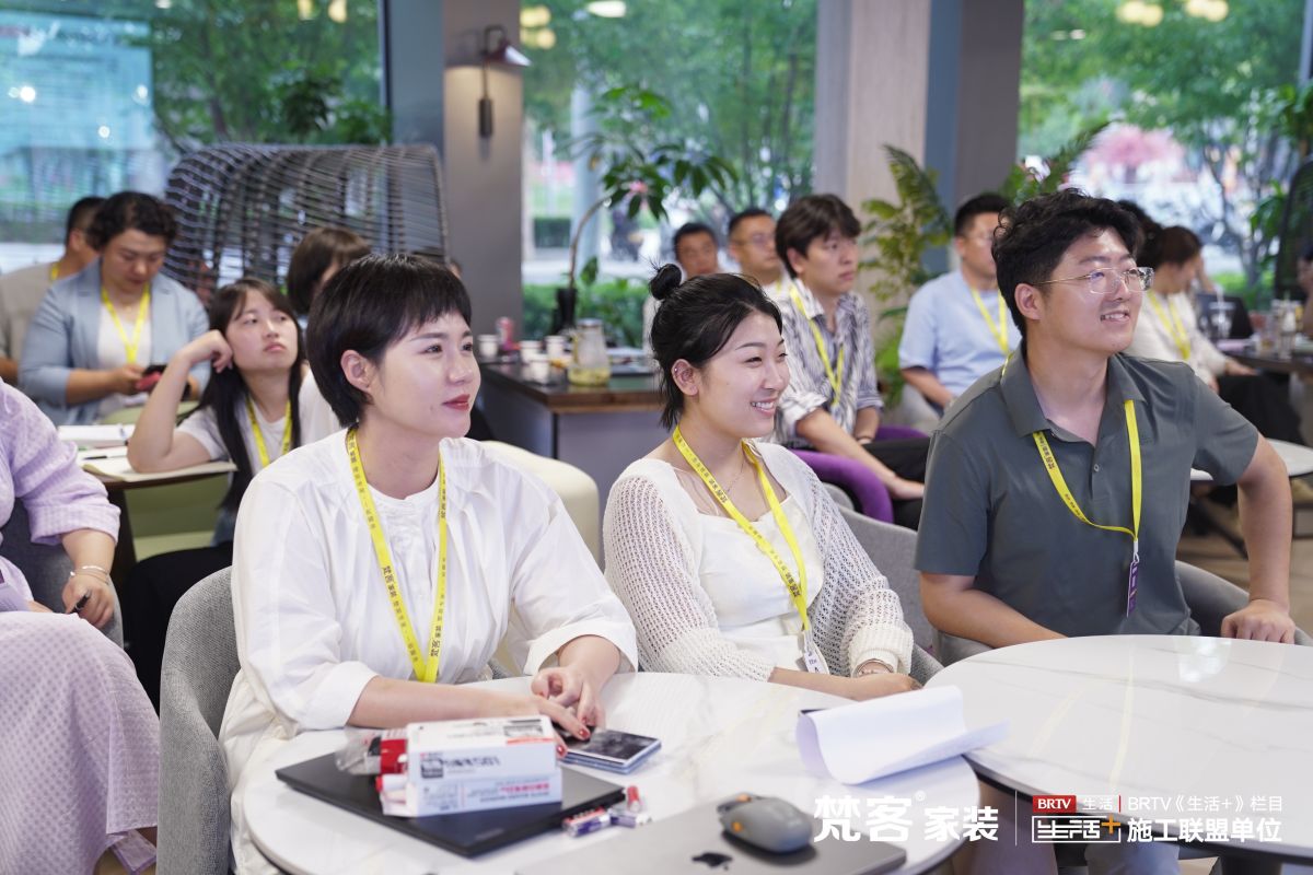 梵客家裝奧體中心店總面積達26000㎡,上下共4層,目前是北京單體面積最大的家居生活體驗館。最具特色的是樣板間的打造,主要以主題空間展示+1:1戶型展示兩種方式進行規劃設計。此外還有冥想空間、茶室空間、“五感”體驗點等,從視覺、聽覺、觸覺不同維度感知鳥語花香、空氣清新。同時,工藝展區、產品展廳也擁有全新亮點。在這樣一個高端體驗店,如何為京城百姓帶來更周全高品質的裝修服務,大家為此進行了深入探討。