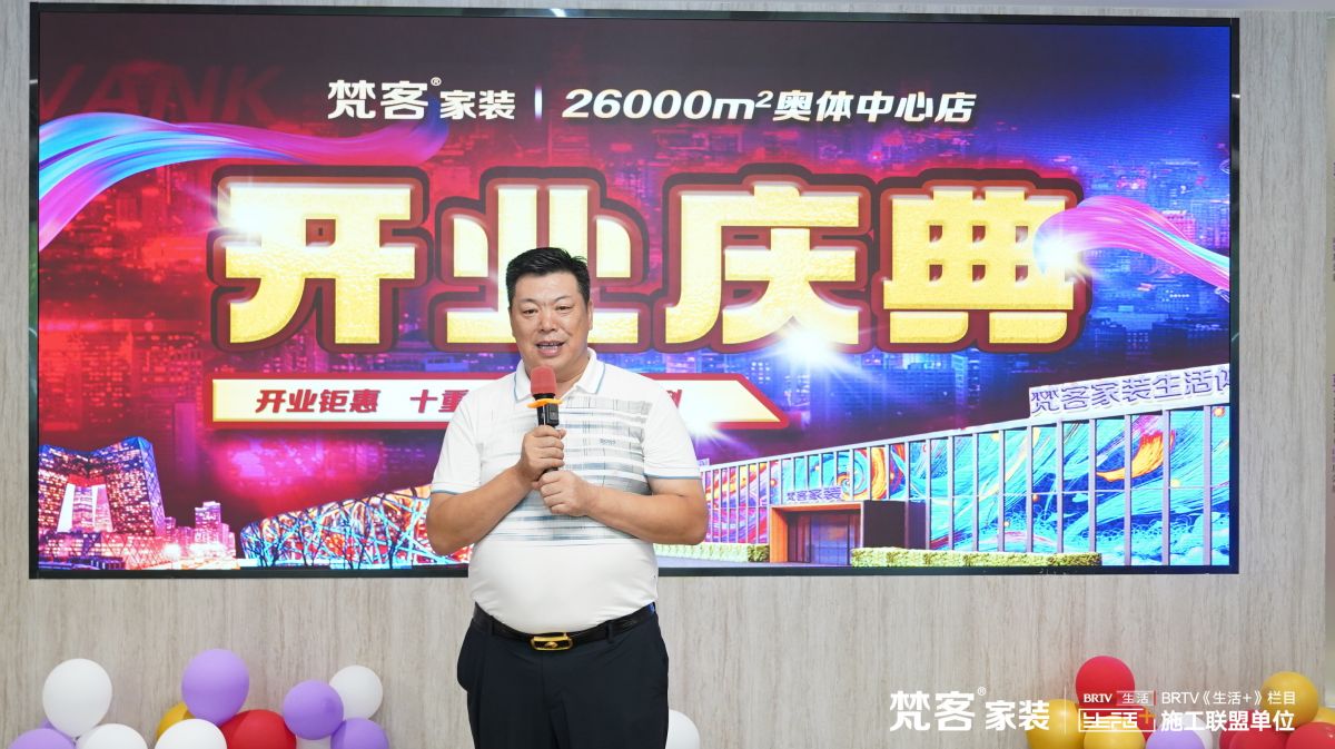 “感謝一路走來支持梵客的行業領導、合作伙伴,以及所有的梵客家人們,因為有大家的支持,才有梵客的今天!梵客家裝從最早600㎡的規模,發展到今天十里河店20000㎡、奧體中心店26000㎡,雖有不易,但依然保持著飛速前行。尤其是奧體中心店,我們花了很大心血打造,其核心作品就是七宅一生實景樣板間,以人生七個生活階段的家為樣本,帶來不同階段的生活體驗。還有梵客家裝特別打造的德標整裝5.0工藝實景展示區,在這里可以了解施工工藝標準…梵客家裝26000㎡奧體中心店的開業預示梵客發展的新篇章,我們也會為業主朋友帶來更好的服務體驗,謝謝大家!”