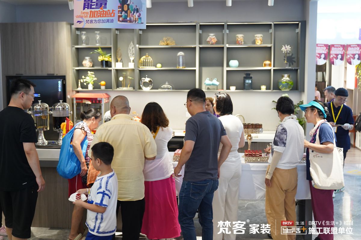 梵客家裝的展廳更是涌滿了前來參觀、選購的業主朋友。這里集合了多套1:1實景樣板間,德標整裝工藝實景展示區,12大品類萬平米選材展區,匯聚了瓷磚、衛浴、地板、木門、櫥柜、定制、家電、家具、吊頂、暖氣、門窗、防盜門等,國內外優質的150余家建材品牌。業主可以在這里尋找裝修靈感,并輕松實現一站式采買解決方案。