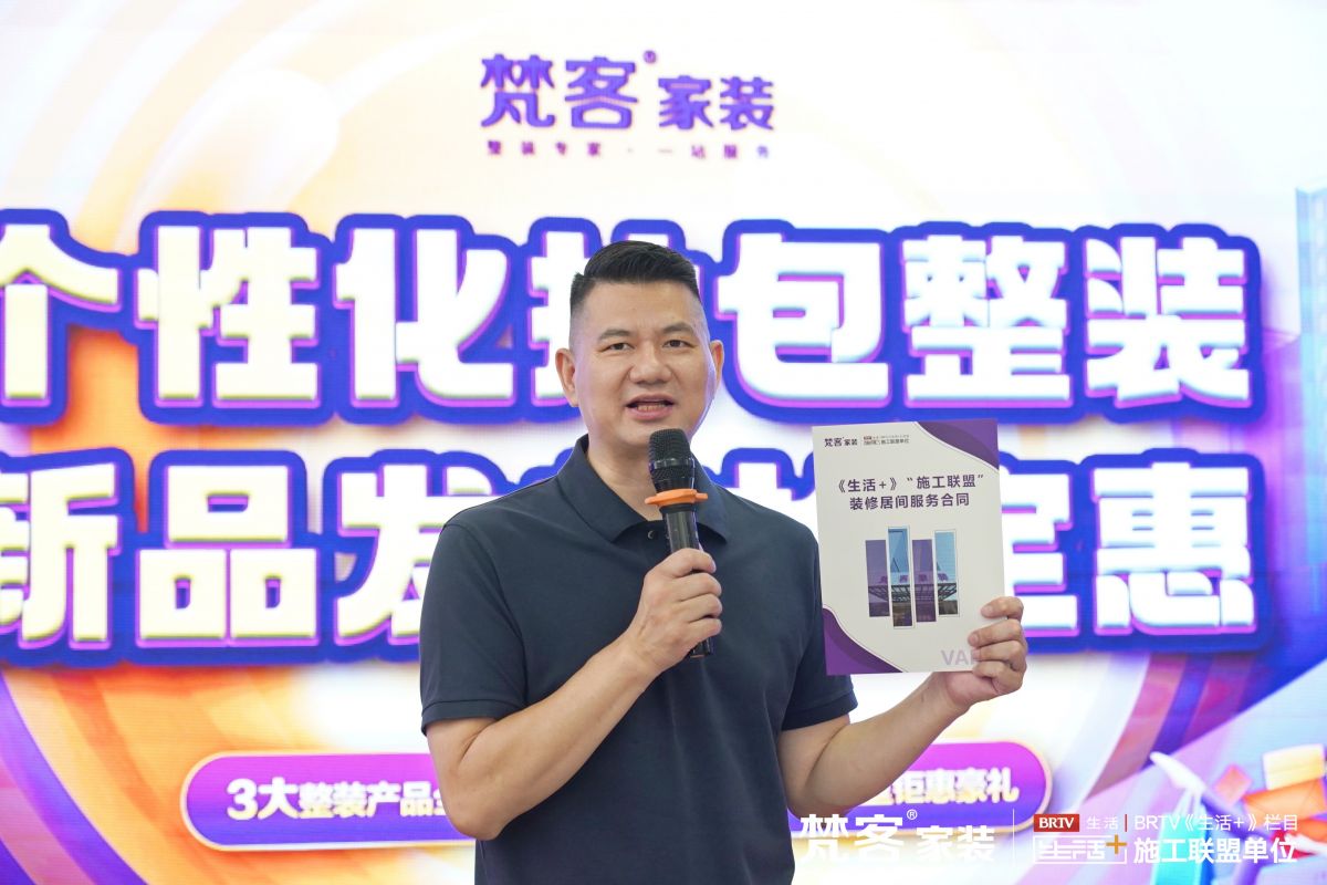 梵客家裝的老朋友北京廣播電視臺《生活+》節目主持人秦天老師也多次前來助力。一直以來梵客家裝都是其施工聯盟單位、指定施工單位,著名節目主持人春妮連續四年為梵客家裝首席推薦官。個性化拎包整裝新品發布搶定惠活動期間,秦天老師專程為大家帶來《生活+》施工聯盟協議,為裝修多了一層保障。