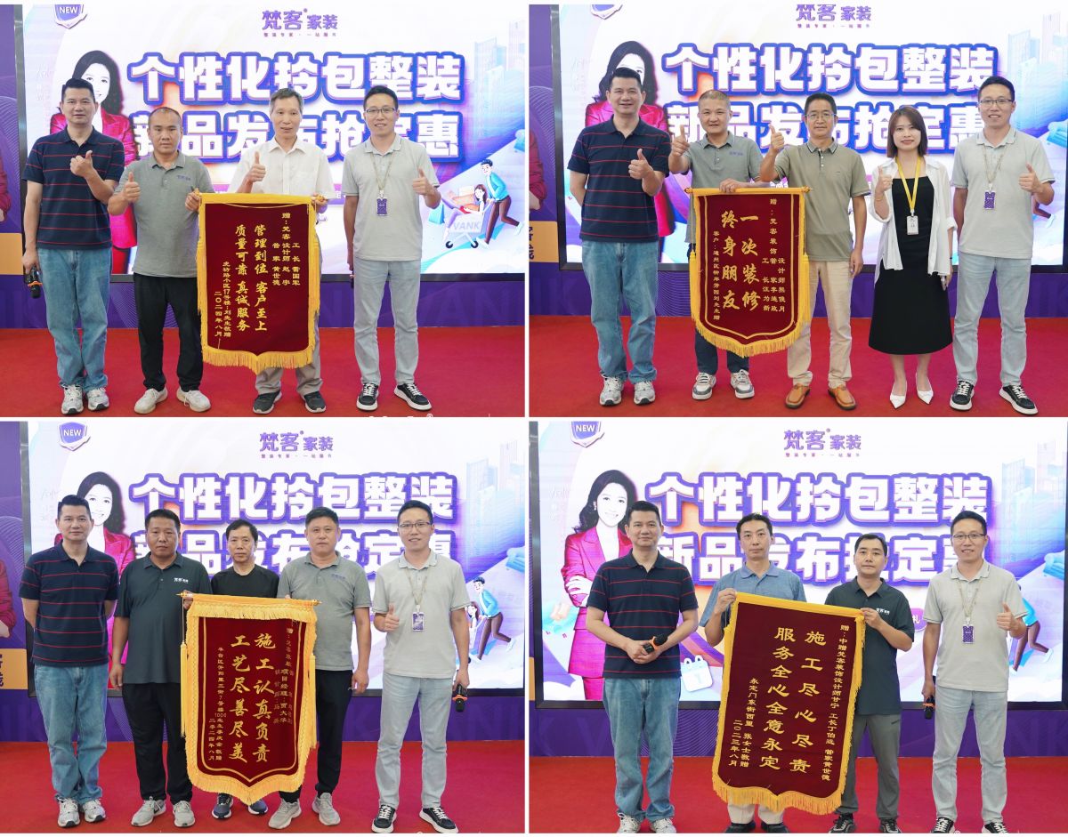 張棟先生和秦天老師還主持了送錦旗儀式,梵客家裝成立十七年,榮獲“最受消費(fèi)者信賴的家裝品牌”稱號(hào),此次整裝產(chǎn)品升級(jí)依然深受業(yè)主的認(rèn)可,再次體現(xiàn)了梵客家裝在專業(yè)、產(chǎn)品、服務(wù)等方面的用心。
