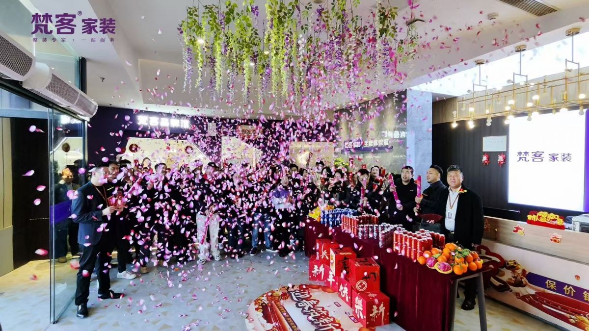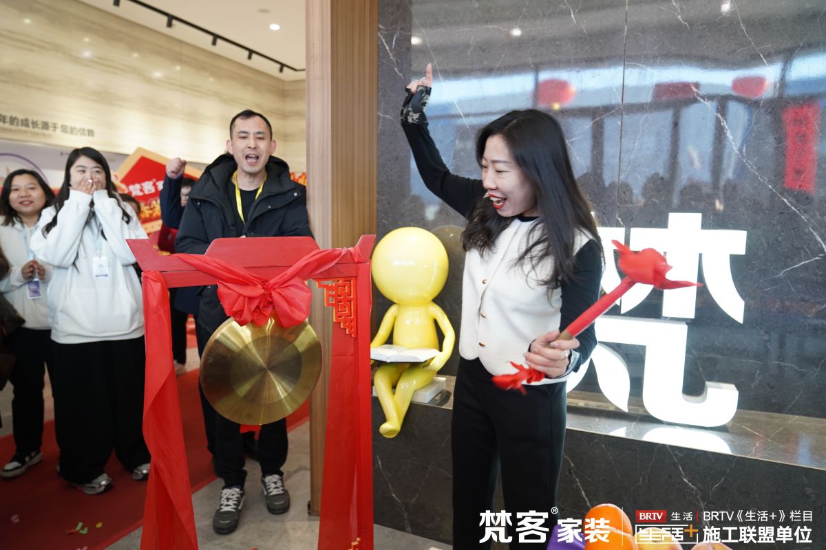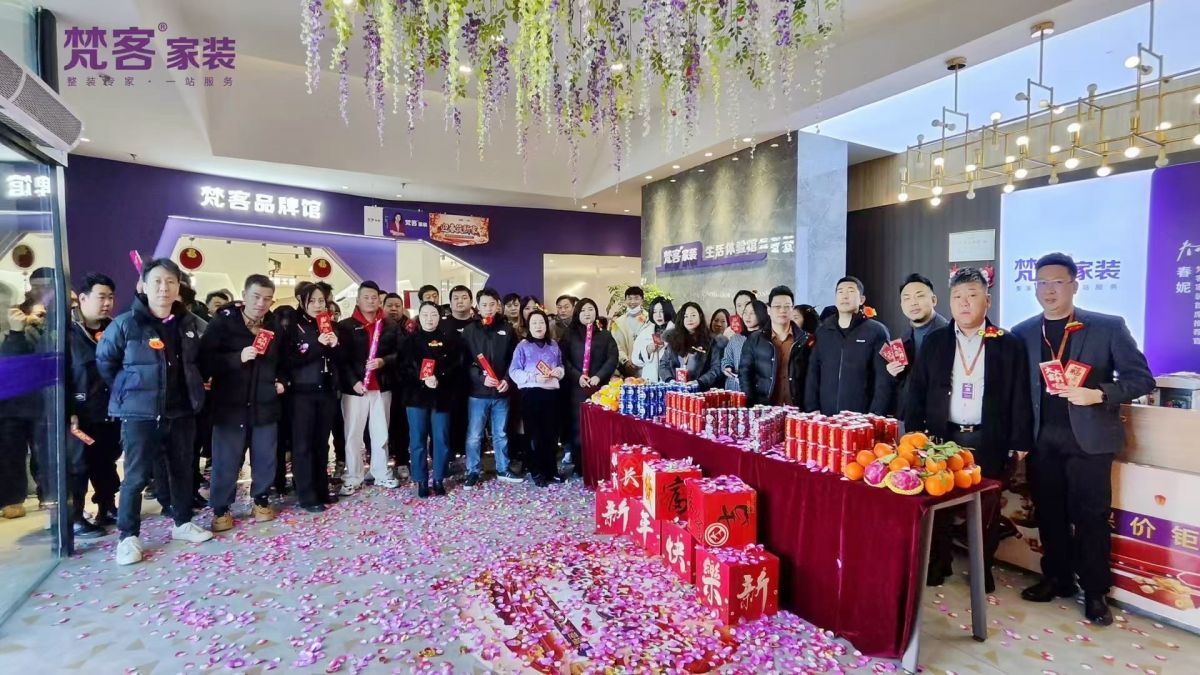 梵客家裝十里河店開工了!2024年底,十里河店面進行全面整改,重新設計了樣板間、改造了展廳、更替更優品牌、上新時下流行產品...只為給業主提供更舒適、更人性化、更先進的購物體驗。正月初八良辰吉時,伴隨著“一錘定音”,禮炮放響,小伙伴迎來開工大吉。開工第一天,領導送紅包,開局一定旺!