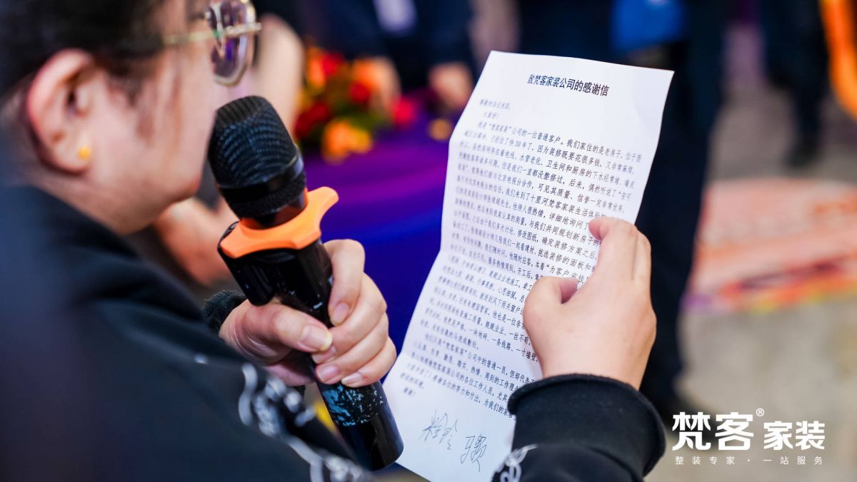 當然,也有已經裝修好的業主不辭辛苦送來錦旗,紅底金字閃爍著榮耀光芒;手寫的感謝信,一筆一劃都表達了對梵客的深情厚誼。