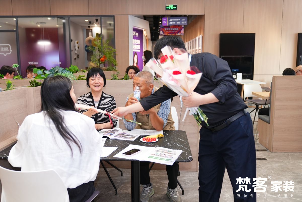 母親節(jié)的來臨,為梵客實(shí)景整裝家博惠增添了一份溫情色彩,鮮花擺滿大廳,甜品無限量供應(yīng),誘人的奶香味由二樓蔓延到一樓,處處都是欣喜。