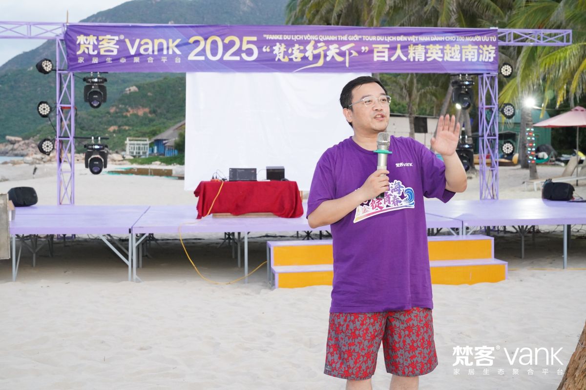 此次旅程最激動人心的時刻就是翡翠灣的沙灘篝火晚宴!梵客集團董事長李靜先生也在百忙之中專程趕來和大家共度狂歡盛宴:“在經濟下滑的情況下梵客依然保持業績增長,感謝每位為之而奮斗的小伙伴的辛勤付出,感謝大家的拼搏與用心,感謝大家把美好的青春獻給了梵客,因為有了你們的努力,梵客能業績長虹、我們能在此相聚,最后,祝愿芽莊之行圓滿成果、大家開心快樂…”