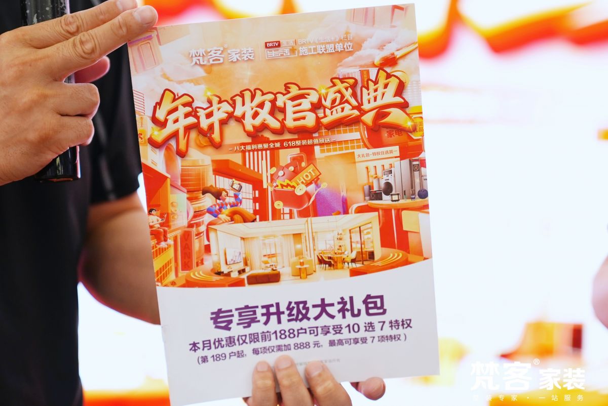 此次,秦天老師還帶來了《專享升級大禮包》,將這個夏季最炙熱的福利,給到業主手中。同時,活動期間,在梵客簽約的業主朋友都會收到《生活+》施工聯盟協議,為裝修多了一層保障。