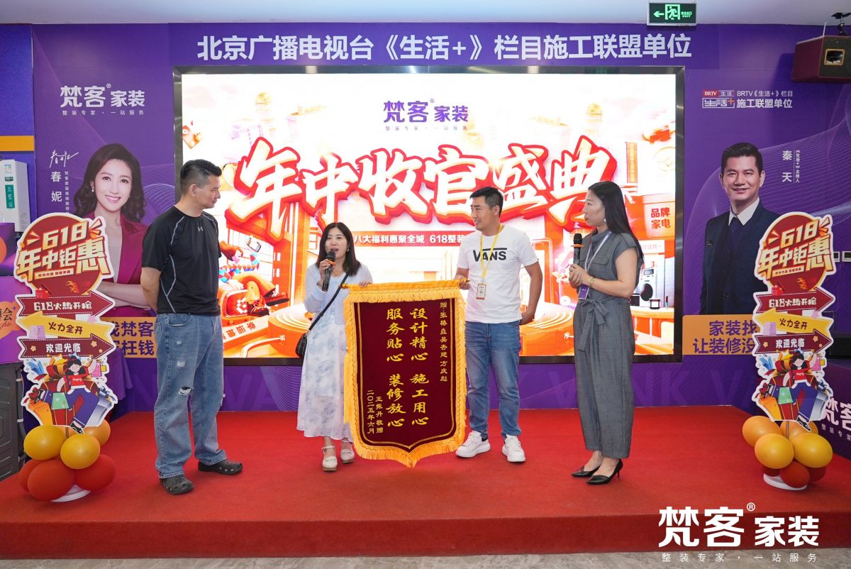 隨后,受邀上臺的是梵客家裝的老朋友、北京廣播電視臺《生活+》欄目主持人秦天老師。多年來,梵客家裝一直是其施工聯盟單位、指定施工企業;連續數年,著名節目主持人春妮都為梵客家裝首席推薦官。