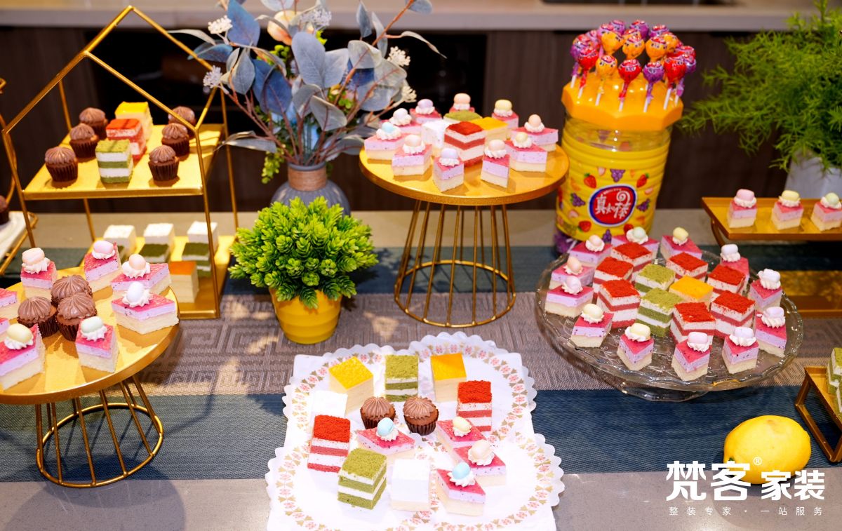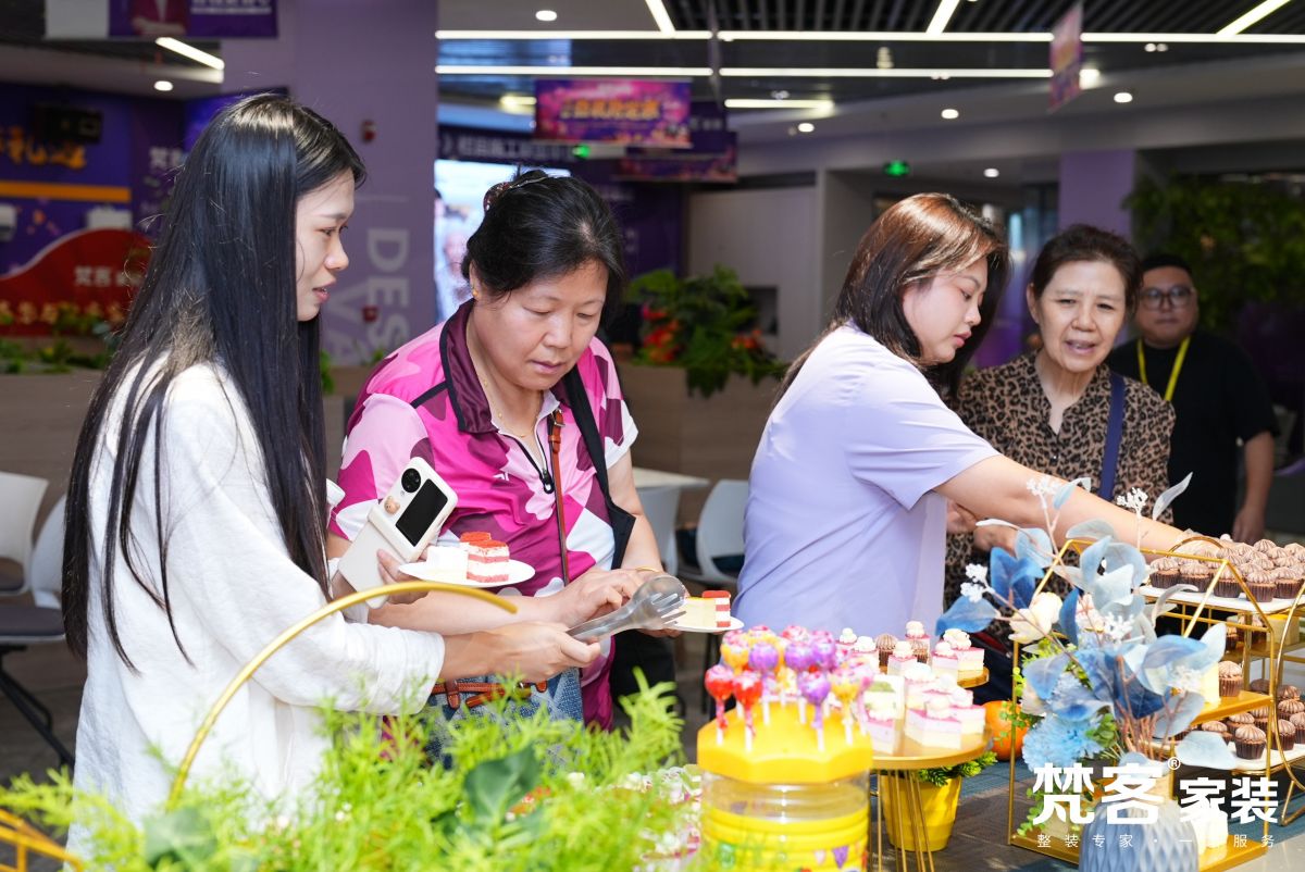 梵客家裝也繼續保持著熱情好客的服務態度,展廳布置一新,悠揚的音樂令人身心愉悅,廣播里時刻播報各類福利信息,吧臺還備好了小食、準備好禮品,不僅要助力業主朋友金秋煥新家,裝修一帆風順,還要一起過個快樂的周末,體會賓至如歸的喜悅。
