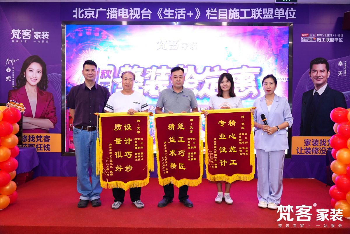 這么重要的時刻,自然少不了梵客家裝的老朋友、北京廣播天電視臺《生活+》欄目的主持人秦天老師的到來,他為大家帶來了一本《生活+》施工聯盟協議。北京廣播電視臺《生活+》欄目為規范裝修市場,專門成立了施工聯盟,為老百姓選靠譜裝修公司把關。梵客家裝一直是其施工聯盟單位、指定施工企業。活動期間,在梵客簽約的業主朋友都會收到《生活+》施工聯盟協議,為裝修多了一層保障。