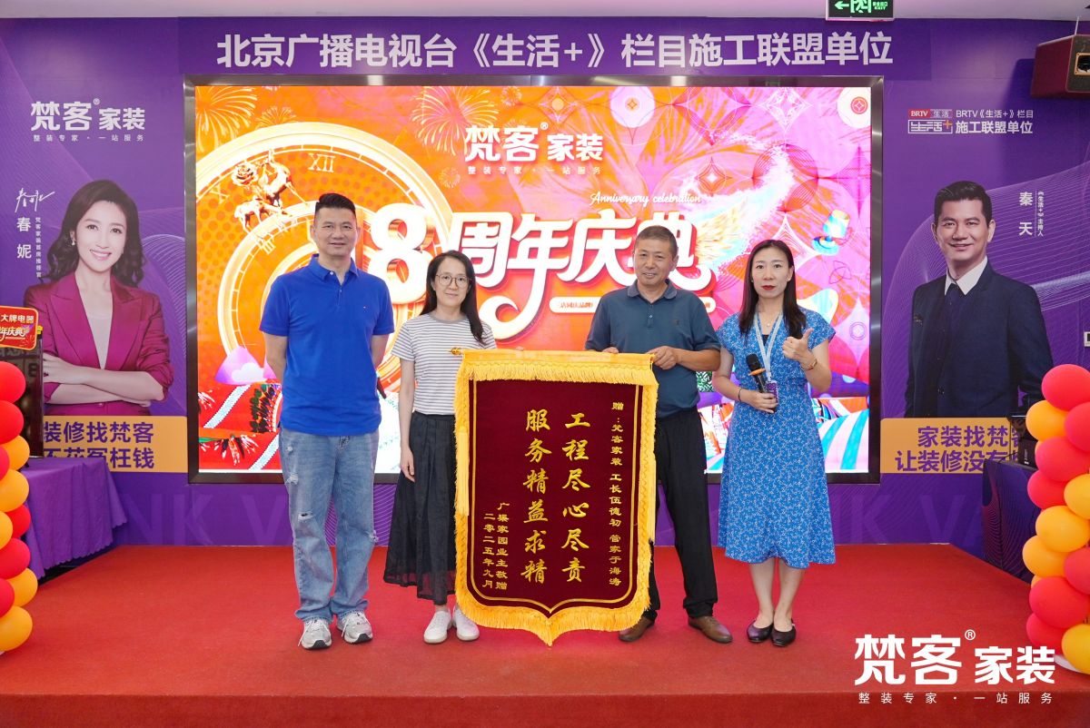已經(jīng)裝修好的業(yè)主朋友也在梵客家裝18周年慶典到來之際,帶著錦旗前來祝賀,紅底金字寫滿感言,是對梵客專業(yè)度及熱忱服務(wù)的最好贊賞。梵客家裝自成立以來,已為數(shù)萬名業(yè)主提供了滿意的裝修服務(wù),用戶口碑、品牌知名度等綜合實(shí)力都位列行業(yè)前茅。