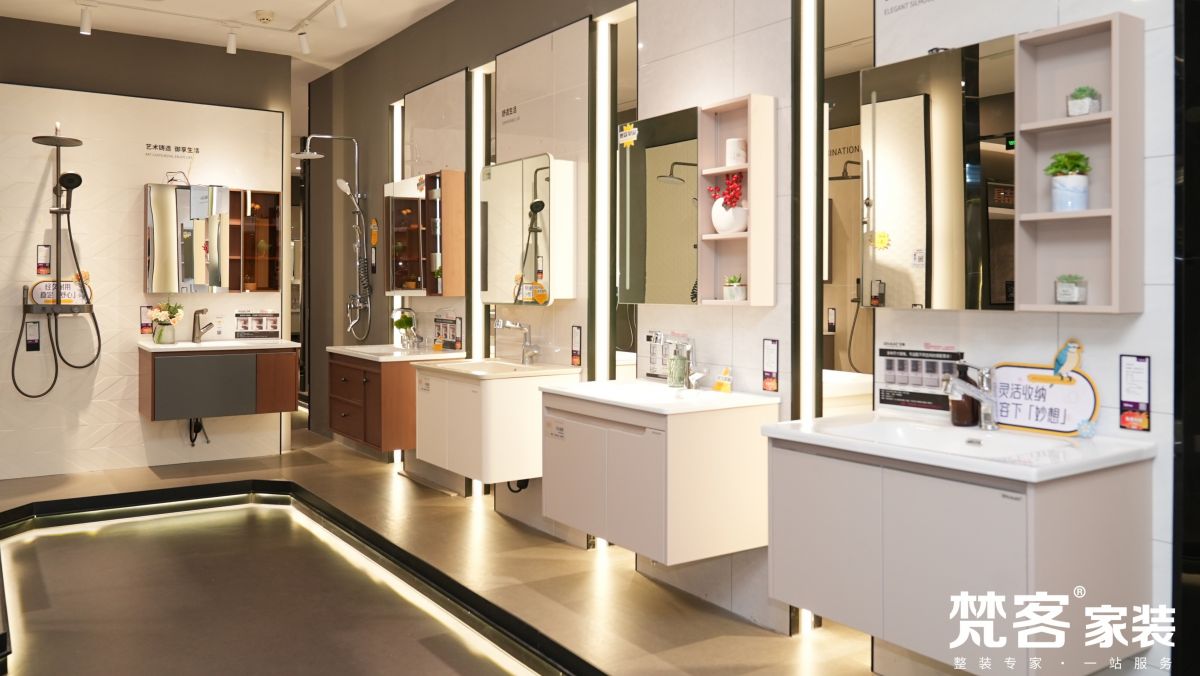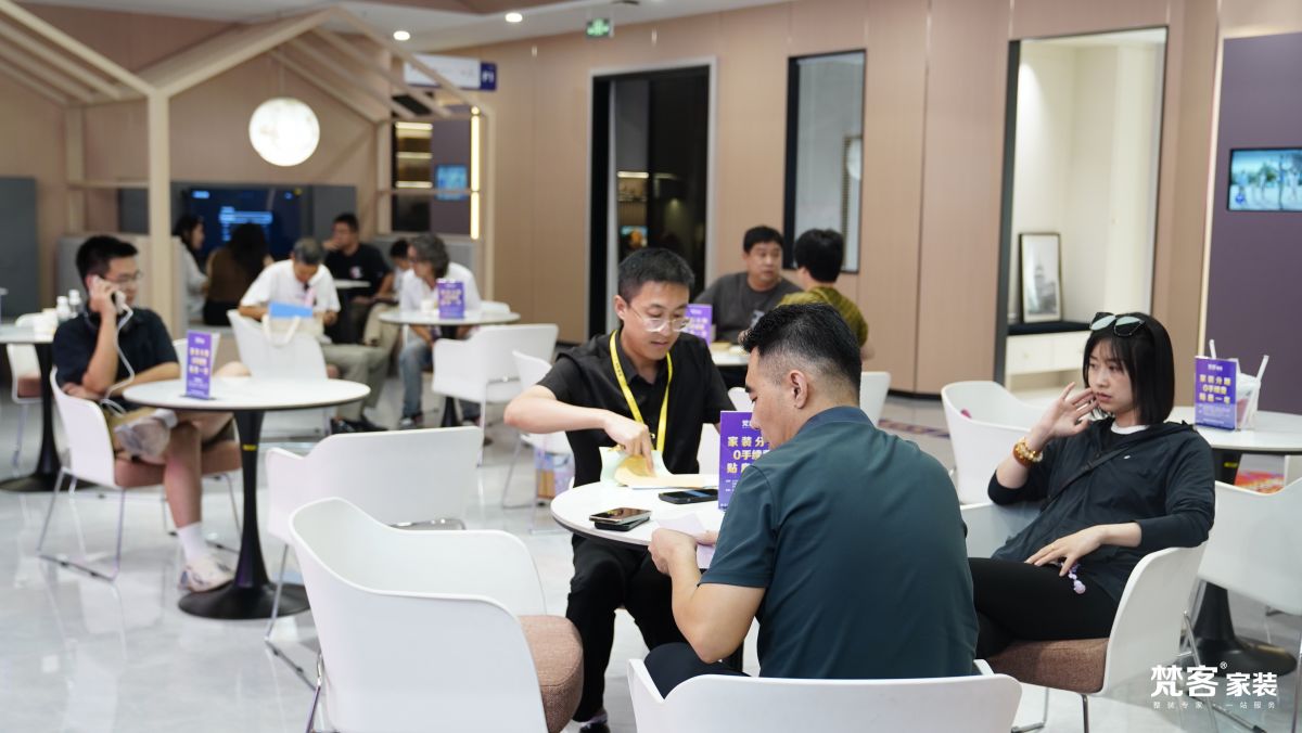 城外誠店采用更新穎的展館設計理念,共三層,設有品牌館、工藝工法區、七宅一生實景樣板間、選材區、軟裝家具展區、洽談區等場景,戰略合作150余家建材品牌,為用戶提供更豐富的選擇,不用東奔西跑,就可實現一站式整裝解決方案。輕松舒適的環境、整齊劃一的動線、琳瑯滿目的產品、匠心獨具的工藝…讓逛家裝展廳成為一種享受,也讓來梵客的業主朋友體會到賓至如歸的感覺。