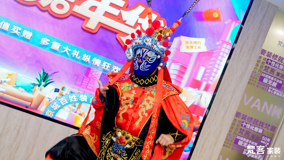 一起來到“整裝嘉年華”活動現(xiàn)場的有梵客集團副總裁/梵客家裝總經(jīng)理任琳、梵客集團CMO張棟、梵客家裝奧體中心店負(fù)責(zé)人劉佳星,梵客家裝城外誠店負(fù)責(zé)人張迪,以及梵客家裝品牌推薦官/著名演員韓童生老師,還有梵客的家人們及一直以來支持梵客信任梵客的業(yè)主朋友們。首先,一段開場節(jié)目《川劇變臉》為此次活動拉開帷幕。