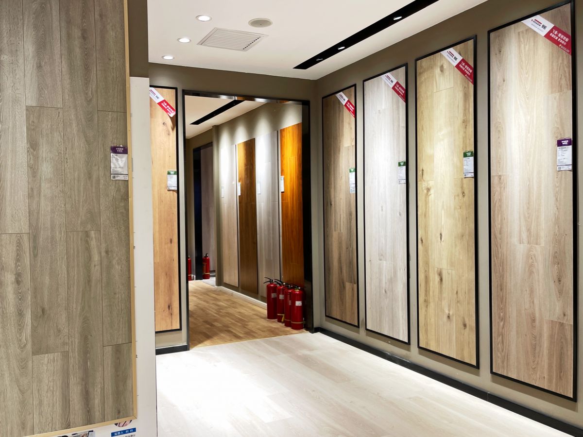 地板區,展區的地板品質高,突破傳統木材觸感,還原真實實木紋理及質感,表面柔韌性好,踩上去腳感舒適。尺寸全面,還有適合別墅豪宅的大板,百種花色滿足不同生活品位及個性需求。