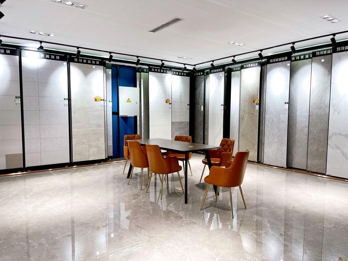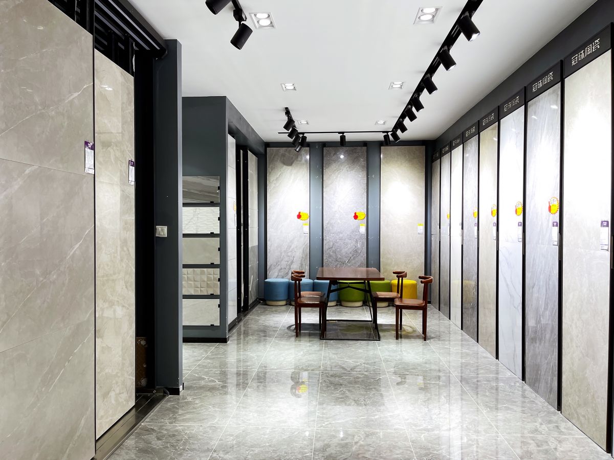瓷磚區,品類多,百款紋理、全套色系,還有適合大空間的大尺寸瓷磚,方便業主隨心暢選。