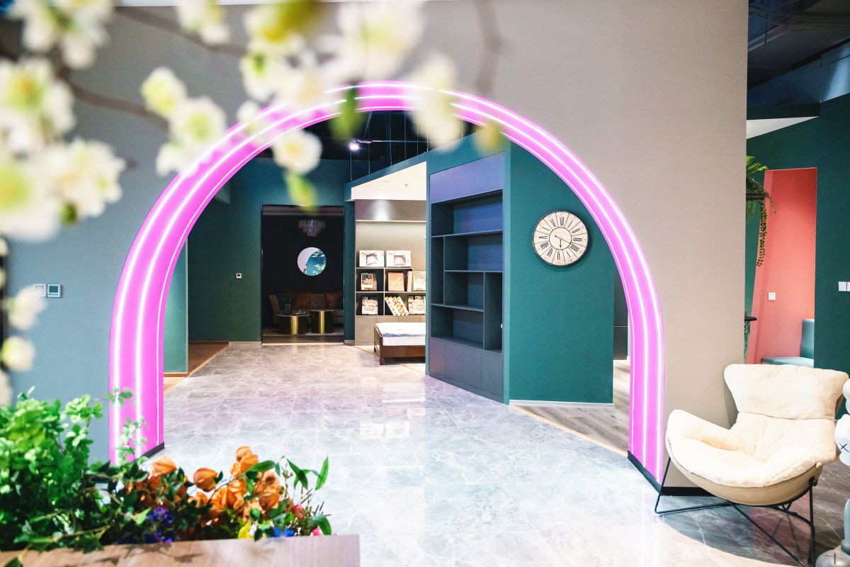 特別是2021年,梵客家裝營建了號稱京城單體面積最大的20000㎡的網紅家居生活體驗館,這里有22處精美絕倫的網紅打卡地,15套1:1實景樣板間,以及咖啡吧、茶歇廳、露臺花園,各種創意新穎、設計獨特的接待室、會議室等等,更是創造了業內家居體驗館方面的典范。