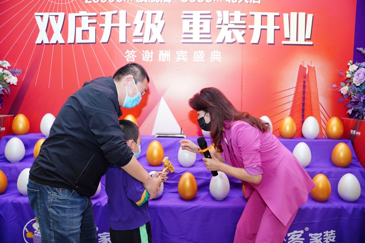 最后,就是我們的簽約砸金蛋了,這也是每次活動必不可少的環節,是梵客家裝為業主朋友提供的最快實現的福利之一。此次,由春妮老師為大家主持。
