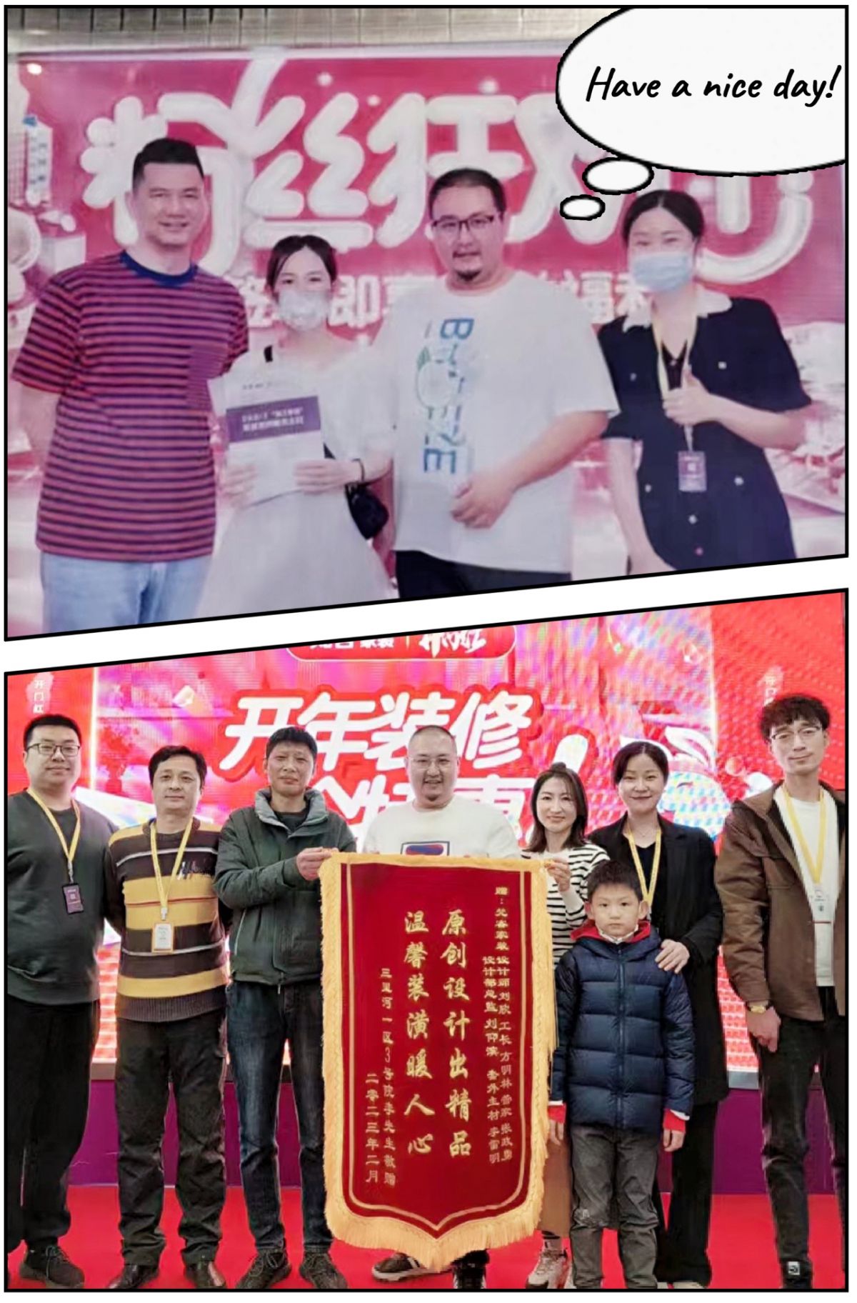 活動現(xiàn)場,裝修好的業(yè)主還送來錦旗,以表示對梵客家裝、設計師、工長等整個團隊的感謝。