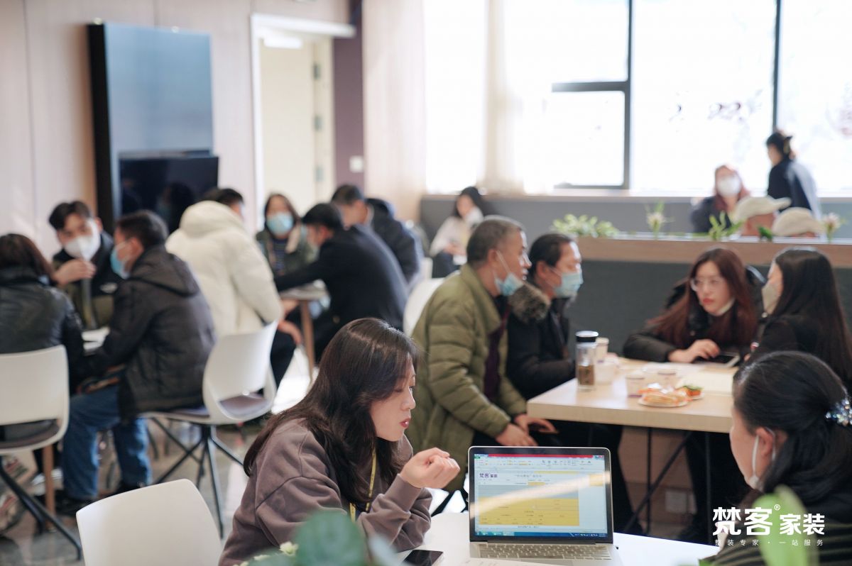 回到梵客家裝20000㎡大展廳,隨處可見正在咨詢裝修的業(yè)主朋友,看材料、選軟裝配飾、了解工藝、參觀樣板間、洽談方案...有圖有真相。