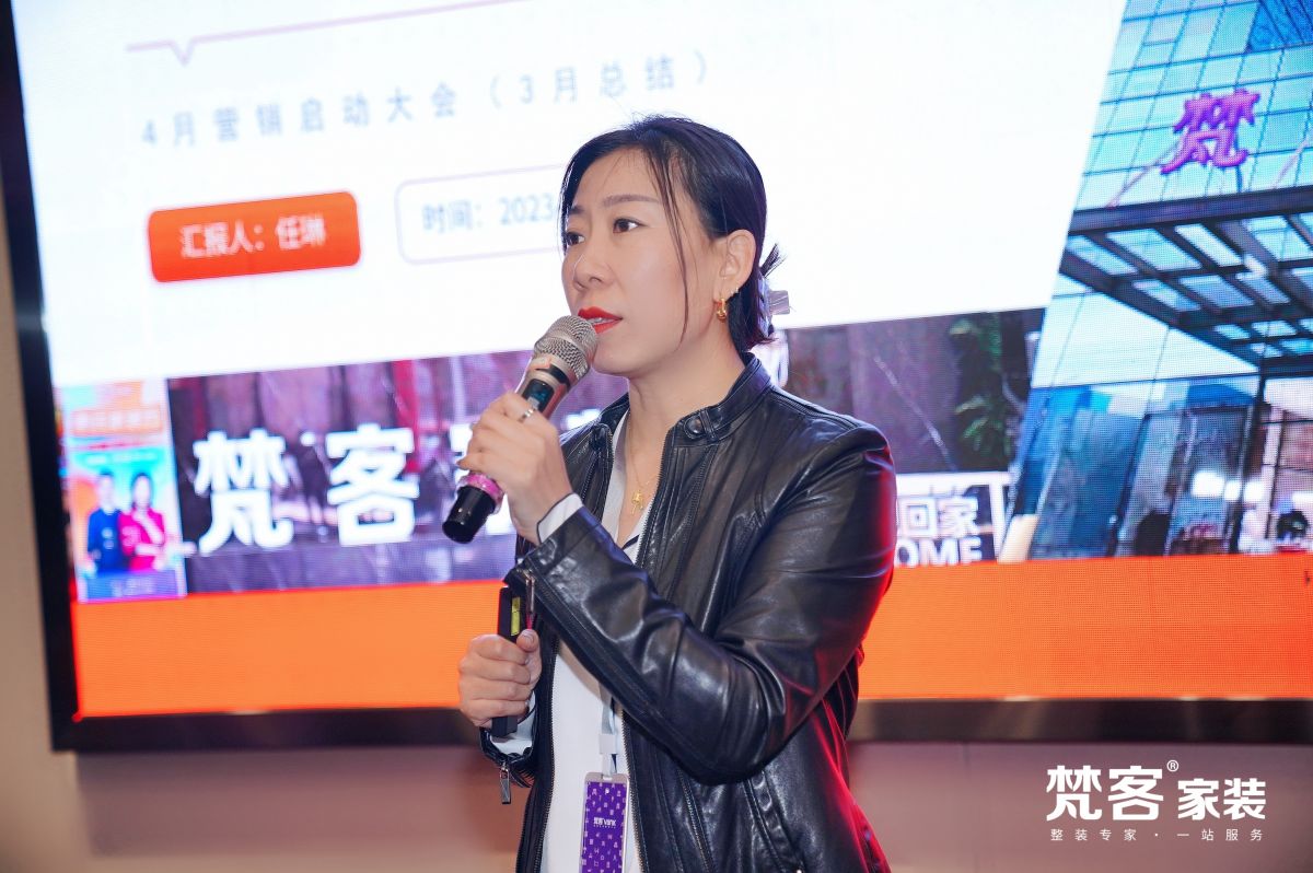 梵客集團(tuán)副總裁、梵客家裝總經(jīng)理任琳女士應(yīng)邀出席大會(huì),并進(jìn)行精彩發(fā)言。分析3月業(yè)績產(chǎn)值、回顧3月大事件、總結(jié)3月營銷活動(dòng)及直播影響力,同時(shí)也提出4月的目標(biāo)任務(wù)及獎(jiǎng)勵(lì)機(jī)制,對(duì)4月活動(dòng)規(guī)劃、工作重點(diǎn)等進(jìn)行深入解析。
