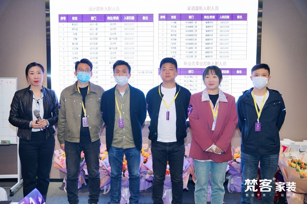 大會(huì)的第一個(gè)環(huán)節(jié),歡迎新員工入職。梵客家裝廣納人才,并為員工提供優(yōu)質(zhì)的工作環(huán)境和機(jī)遇。在梵客,可享受生日會(huì)、年度盛會(huì)、現(xiàn)金激勵(lì)、年終分紅、出國游等一系列高品質(zhì)福利。未來,新員工將融入梵客大家庭,和大家一起并肩作戰(zhàn),共創(chuàng)輝煌。