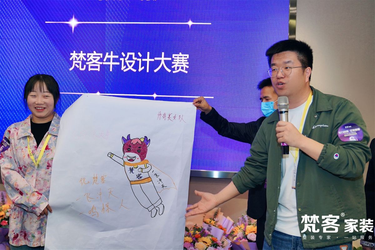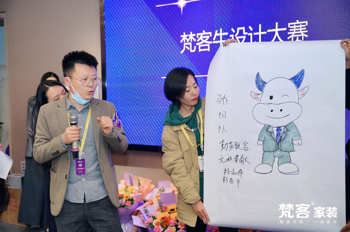 大會(huì)現(xiàn)場,考核了設(shè)計(jì)們的現(xiàn)場反應(yīng)能力及手繪水平,在規(guī)定時(shí)間內(nèi)圍繞“牛”的形象,發(fā)散思維,設(shè)計(jì)吉祥物。此刻,你會(huì)發(fā)現(xiàn)梵客的小伙伴不僅業(yè)務(wù)能力強(qiáng),還各個(gè)多才多藝,身懷絕技。