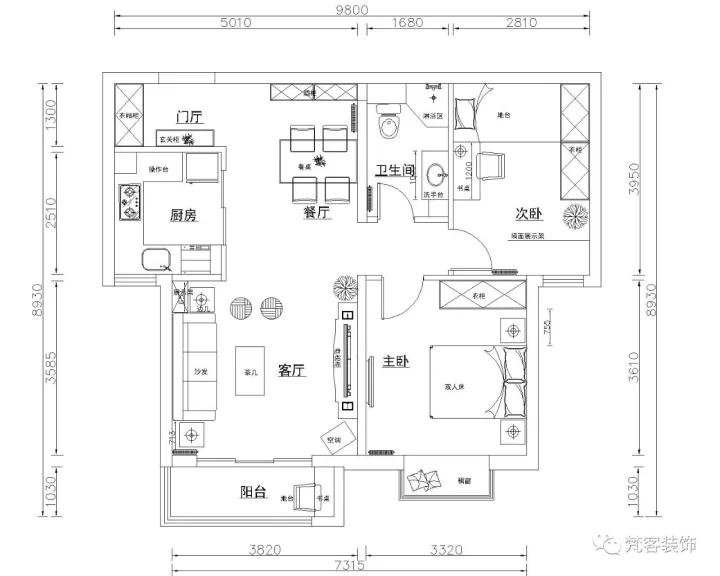 裝修造價:15萬元(施工加主材)
