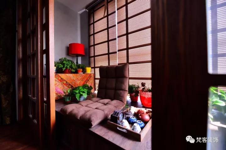 陽臺榻榻米也是一得力制作,滿足了夫妻二人平時喝茶、做手工的興趣愛好,還兼顧收納儲蓄功能。推拉門關上,就是一個獨立的私享空間。