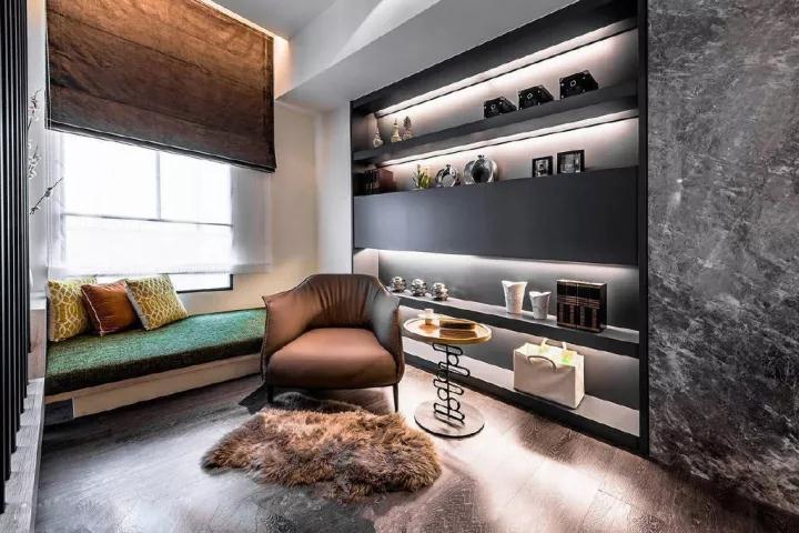 完全看不出陽臺的痕跡,就像一個獨立的休閑室,可以在這里品茶、看書、曬太陽。玻璃移門既節約空間,還能借次臥的陽光給客廳。