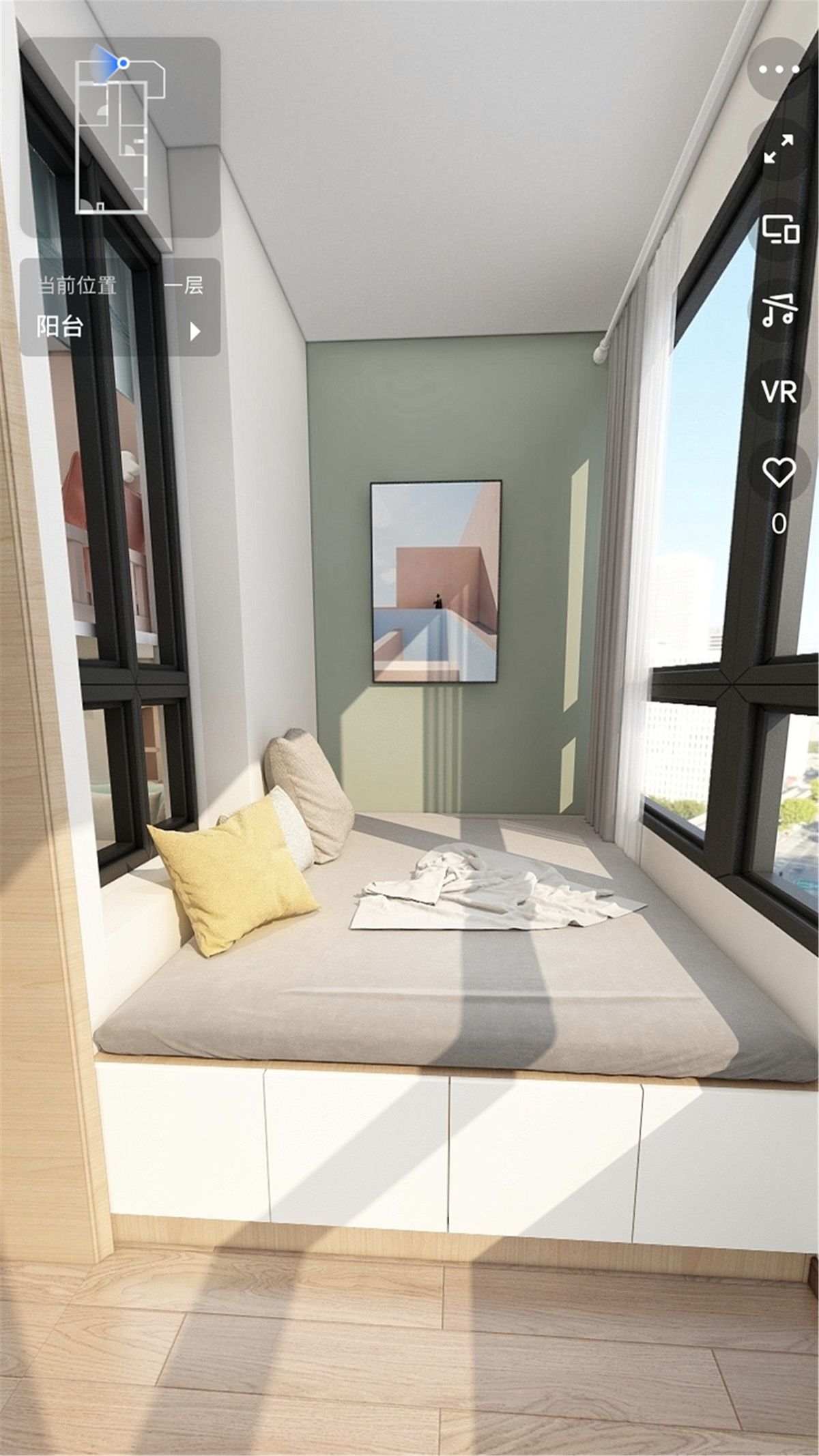榻榻米的另一邊就是陽臺(tái),也是陽光房,小朋友平日可以在這曬太陽、玩耍,多了一個(gè)娛樂小空間。