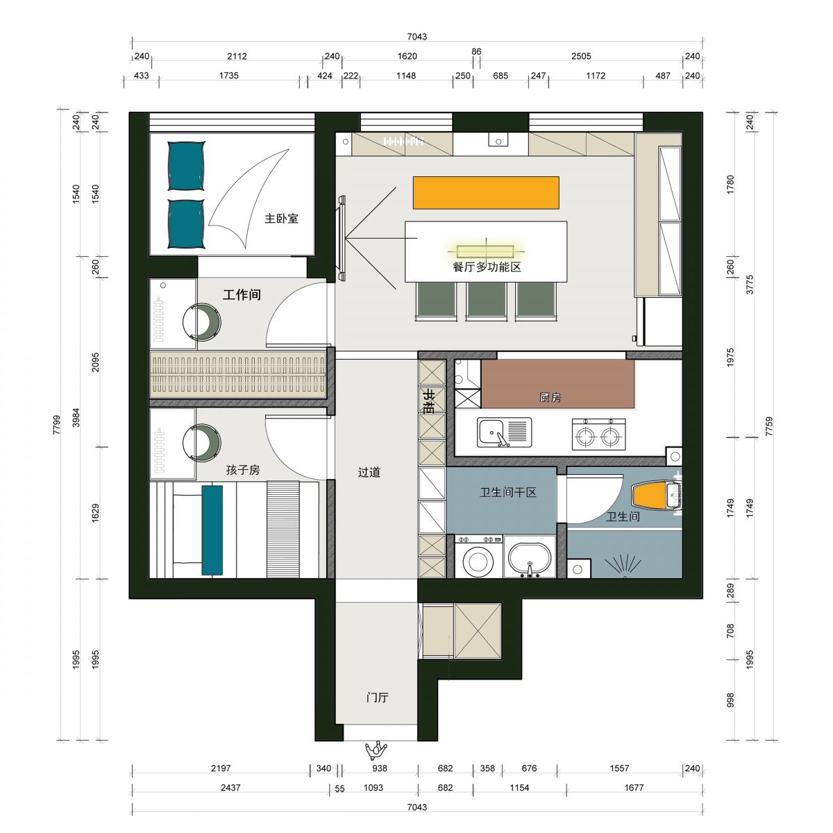 業主是三口之家,小朋友正在讀小學,功課繁重,興趣愛好多;太太是老師,藏書頗多,喜歡做飯;先生是公務人員,需要在家辦公。37平米的小空間,需要承載一家三口的歡樂。