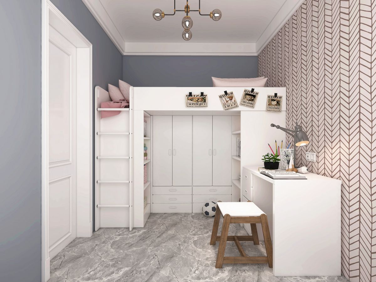 孩子房的設計充滿了新奇特!小朋友一心想住上鋪,為了滿足孩子的心愿,設計師采用兒童多功能組合柜的設計。